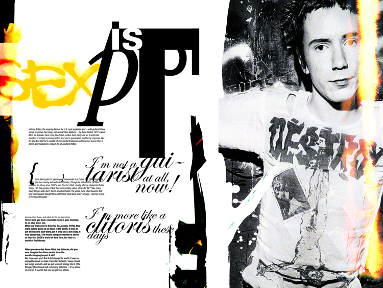 Cover design and two double page spreads from the limited edition hardback book 'Punkulture'. The book was an anthology of punk, with new interviews, unseen pictures and material spanning the cultural movement. The cover was created using specially created fly posters that were pasted onto various outside locations. The images taken where then used to create bespoke collages. This hands-on approach was felt to be in keeping with the DIY nature of the original movement.